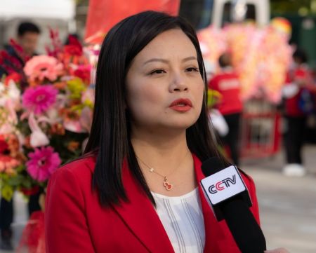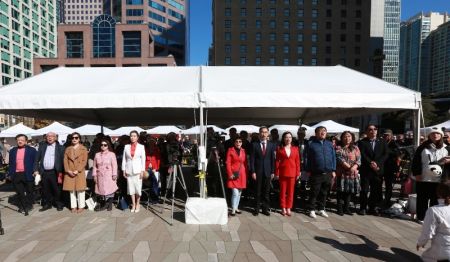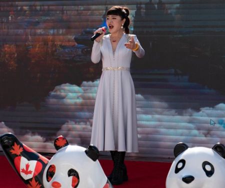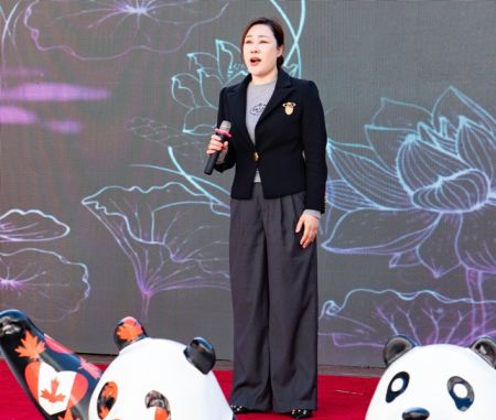 加拿大华人社团联席会执行主席薛晓梅讲话时,热烈欢迎来自各界的代表和现场观众,她说,在加拿大多元文化的沃土上,我们弘扬中华文化艺术,欢度中秋佳节,喜迎中国国庆!在这个特别的日子里,十二个专门订制的彩绘熊猫雕塑亮相美术馆广场!熊猫是传递友谊的使者,联系着我们共同的情感。在这个特别的时刻,让我们心连心,手牵手,用文化作纽带将人类世界紧密相连!社团联席会和四川同乡总会每年都将举办中国文化艺术节,让加拿大各族人民一起领略中国不同地域的文化风情,加深中华文化与本地各族裔文化的融汇贯通。今天也是加拿大国家真相与和解日,联席会全体成员将和各族裔人民一起,相互尊重,团结一致,平等互利,共创辉煌!