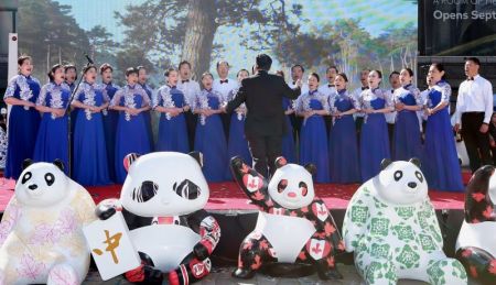 大家相聚在文化艺术节的广场上,用歌声和乐语,用艺术和美食,用友谊和交流,共同欢度这难忘的中秋!让我们与熊猫为伴,在灿烂的阳光里,在明亮的月光下,传递友谊和温暖!中秋佳节,熊猫圆月,承载着人类的相思相爱,愿天上人间共享这美好时光!