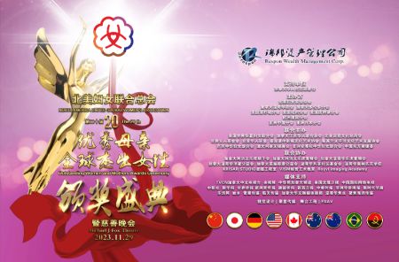 今年北美妇女联合总会颁奖活动和往年一样受到加拿大三级政要、中国驻温哥华总领事及世界各地华人社团的支持与祝贺。今年北美妇女联合总会迎来了第二十次举办优秀母亲暨杰出女性颁奖典礼暨慈善晚会盛典。剧场进门大厅右侧的《和平海报》展是和列治文乐虎狮子会、列治文乐虎青狮会举办的第七年度为BC省儿童临终关怀医院(Canuck Place Children’s Hospice)进行义拍筹款,募捐到的全部款项捐赠给儿童临终关怀医院。