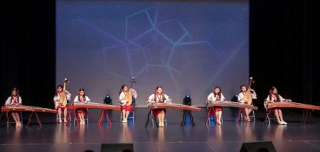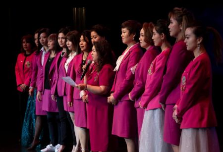 晚上七时,高旭东-东方琴韵乐团的古筝琵琶演奏拉开序幕,晚会双语主持人Bonnie Chen 、 Mark Wiens和Ema上台,推出关梓霖领唱加中两国国歌,接着,北美妇女联合总会会长徐凌在副会长兼秘书长黄薇燕、副会长兼财务长王静、副会长兼副秘书长许加玲等副会长及理事的簇拥下,款款登台。