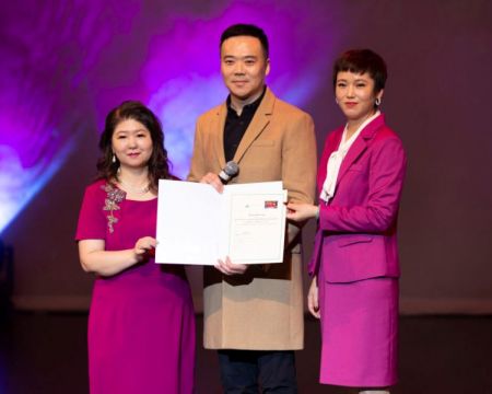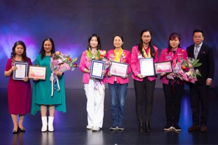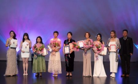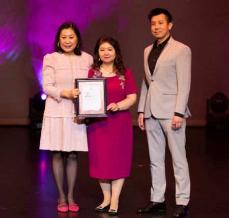 徐凌会长、黄薇燕副会长兼秘书长颁奖给获奖者:CoCo Hong 洪楠、Jane Chen 陈杰、Julia Lei 雷萍、Sara Liu 刘妍荟、 Rosey Zhou周茹洁、Emily Lin 林欣怡、Liqun Fang方利群、Vicky Li 李洁。