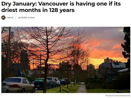 虽然不少居民可能很享受这个一月难得的晴朗天气和绝美日落,但对BC省的森林来说,这种持续的干燥却不太友好。缺水会让生态系统面临压力,甚至可能带来潜在风险,森林迫切需要降水来“解渴”。你是希望来场大雨甚至一场雪,还是更喜欢这样的阳光明媚?(来源:VanPeople)