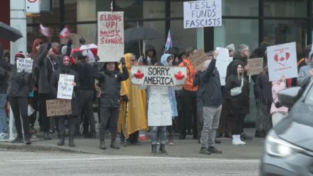 加拿大数十名抗议者周六(3月15日)聚集在温哥华西4大道(W 4 Ave)的特斯拉展示厅外,表达他们对该公司行政总裁马斯克(Elon Musk)的不满。据CTV报道,抗议人群挥舞著加拿大国旗,举著写上「特斯拉资助法西斯主义」和「送马斯克去火星」等标语的告示牌,高呼口号,唱着O Canada国歌,并争取路过的特斯拉司机支持该行动。