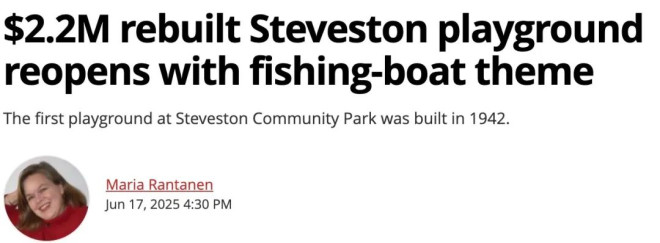 其实,这已经不是Steveston社区公园第一次“烧钱”了。去年,列治文市就在这里投了220万重建游乐场。
