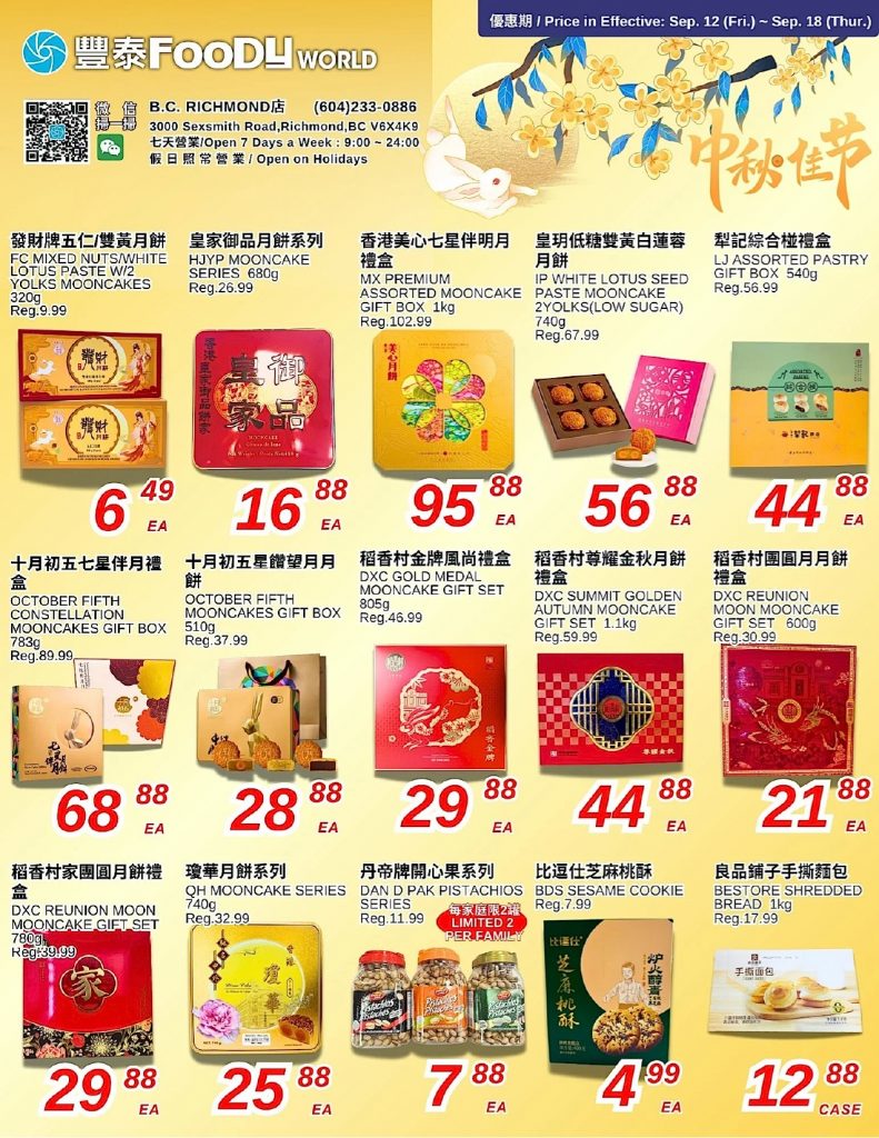 大温哥华地区一周优惠清单出炉(9月19日起)