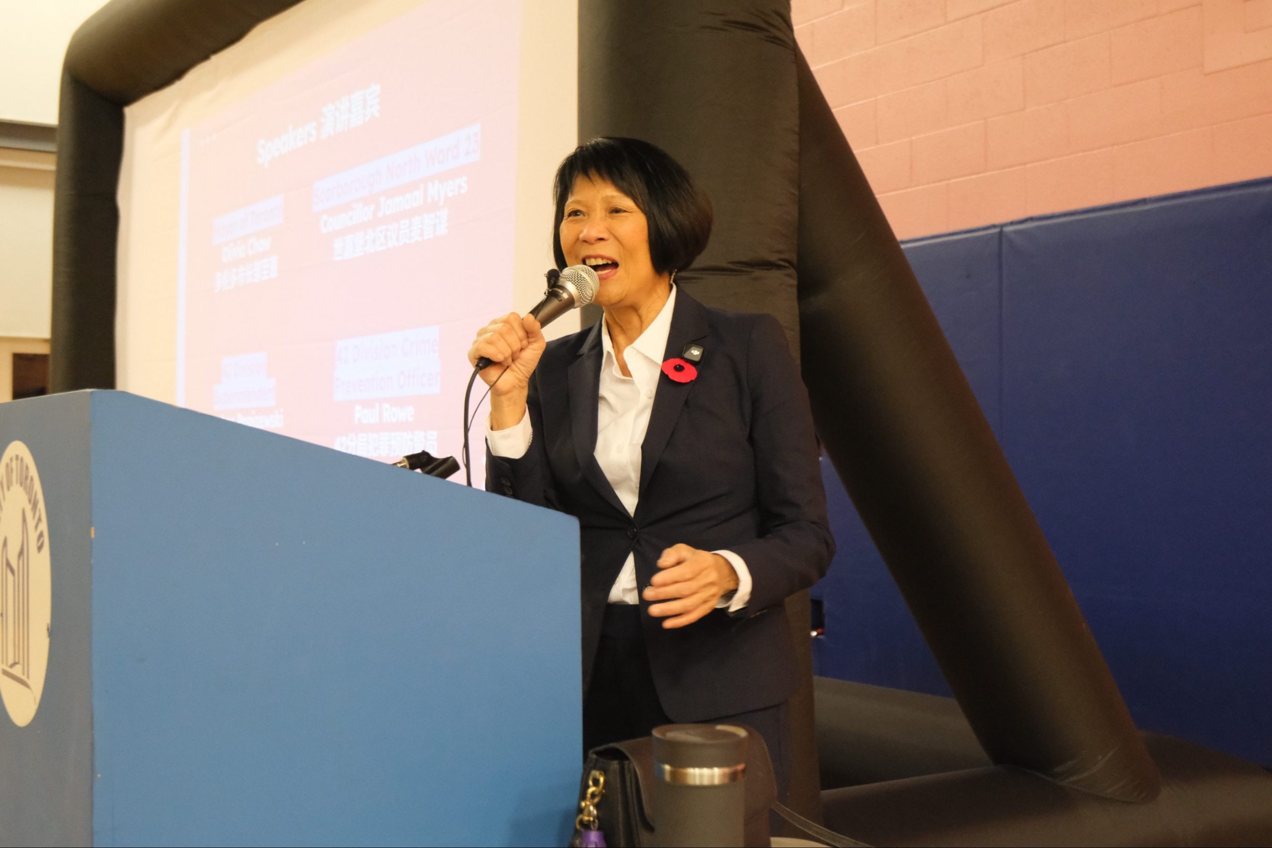 11月6日,邹至蕙市长在士嘉堡北区举办社区安全大会,向市民通报多伦多在提升社区安全方面的最新进展。