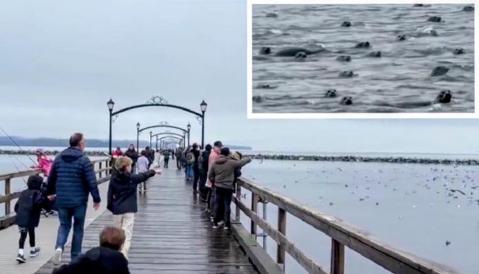 大温哥华地区一处海岸出现极罕见的海洋生态奇观,吸引居民纷纷探身靠出栏杆观看和拍照。在白石镇的塞米亚穆湾(Semiahmoo Bay),近日有多达200只海豹在岸边联群集结,而这种动物长期以来都被认为是有独居习性的海洋生物。
