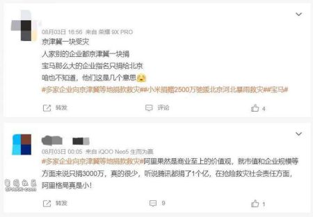 至于像“民营企业驰援京冀救灾”“明星捐款第一的……让人出乎意料”等等推文,还有很多。这也让人意识到,恐怕又到了一个鼓励(抢白)企业的时间节点了。