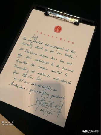 我印象最深的两次,一次是2022年,我三位孔子学院的老师,被该组织自杀式恐怖袭击夺去了生命。当时,刚出任巴基斯坦总理的夏巴兹·谢里夫,亲自来到中国大使馆,并特意在有中国国徽图案的使馆信纸上,写下了这样一段话: