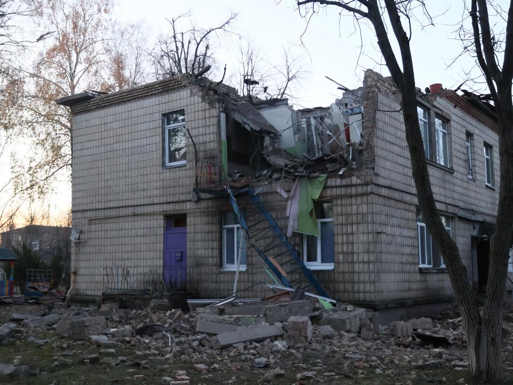 乌克兰空军11月25日在社交媒体发文说,俄罗斯当天凌晨出动75架攻击型无人机对乌发动空袭,空袭主要方向是乌首都基辅市。图为基辅市一栋建筑屋顶被无人机碎片击中。新华社发(罗曼·佩图什科夫摄)