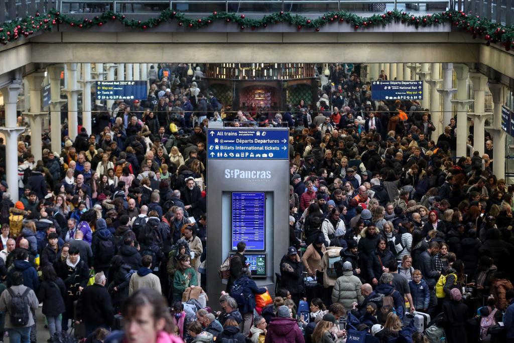 欧洲之星多次列车因罢工被取消。12月21日,旅客滞留在英国伦敦圣潘克勒斯火车站。新华社发