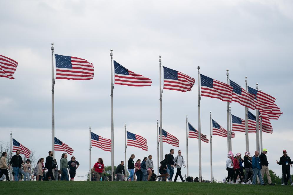 4月25日,游客在美国首都华盛顿的国家广场游览。新华社记者 刘杰 摄