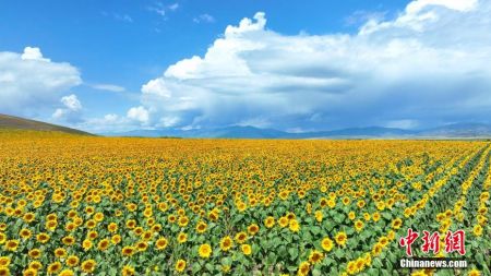 新疆昭苏万亩向日葵盛开:亭亭向日颜色鲜