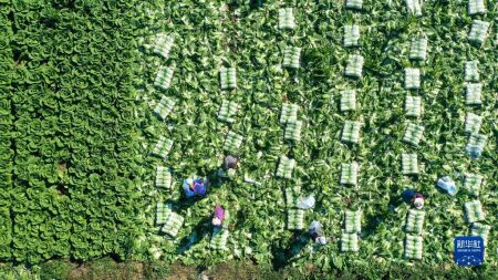 时下,河北省玉田县15万亩白菜正值收获季,菜农们抢抓晴好天气收获、包装、运输,田间一派繁忙景象。玉田县是华北地区重要的蔬菜产区之一,素有“中国大白菜之乡”美誉,白菜年产量90余万吨,产品畅销北京、天津等地市场。新华社记者 牟宇 摄