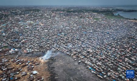 这是3月2日在尼日利亚拉各斯拍摄的马科科贫民窟(无人机照片)。