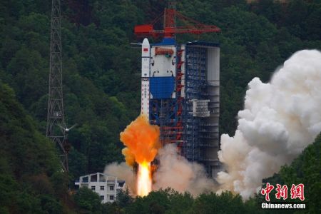 北京时间2024年4月21日7时45分,中国在西昌卫星发射中心使用长征二号丁运载火箭,成功将遥感四十二号02星发射升空,卫星顺利进入预定轨道,发射任务获得圆满成功。此次任务是长征系列运载火箭的第517次飞行。(杨熙 摄)
