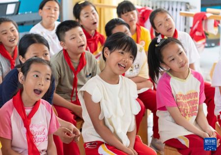 5月30日,在安达市任民镇中心学校,“村里的孩儿”音乐班的孩子在练习合唱。