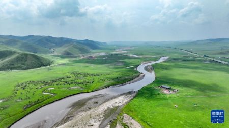 7月4日拍摄的内蒙古兴安盟科尔沁右翼前旗乌兰毛都草原夏日风光(无人机照片)。