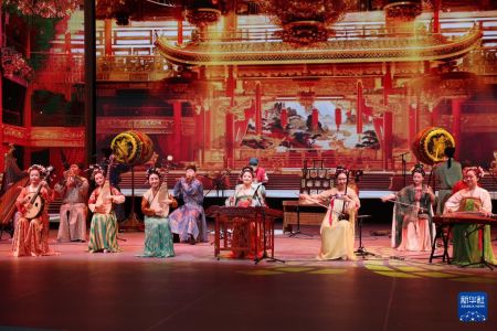 这是7月11日在日本大阪世博园区拍摄的大阪世博会中国国家馆日活动中的“华彩中国·共绘未来”大型文艺演出现场。