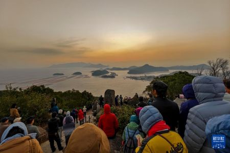 12月4日,摄影爱好者们在霞浦县三沙镇花竹村观赏拍摄海上日出。