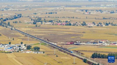 12月8日,重载群组列车在试验开行(无人机照片)。