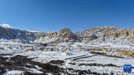 1月24日,西藏阿里地区札达县迎来降雪,全国重点文物保护单位古格王国遗址披上银装,呈现壮美雪景。