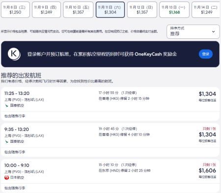 不过这样的价格即将成为历史,对于往返美中两国的民众来说,最难的日子已经过去了。在去哪儿平台上,上海-洛杉矶的机票价格由年初的1.5万元人民币,降至暑期1万元人民币,9月降至8000元人民币左右,目前查看11月价格已降至7000元人民币。