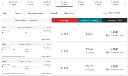 新增的三个直飞航班为每周三、五、日。晚上23:15温哥华起飞,到达香港为当地时间早上5:30。也就是说,每周三、五和日,加航将有两班温哥华直飞香港。目前,加航官网搜索到春节前后几天直飞香港的航班机票,价格保持在1400加元左右,与新历年期间的票价对比,略有下降。(来源:VanPeople)