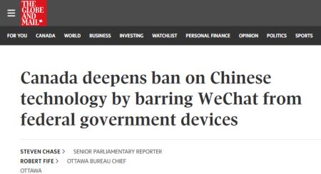据加拿大媒体报道,加拿大政府今天宣布,禁止在政府设备上使用中国社交媒体应用微信(WeChat),理由是该应用在安全和隐私方面存在“不可接受的风险”。