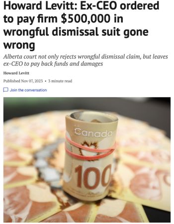 在加拿大,如果出现劳资纠纷,法律往往站在相对弱势的劳方,然而,最近AB省的一个案件却上演了惊天反转。起诉不当解雇并要求赔偿的前首席执行官(CEO)不仅输掉了官司,还要向前雇主支付补偿性和惩罚性赔偿,共计53万加元。