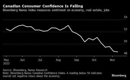 加拿大消费者信心指数一路下跌(图源:Bloomberg)