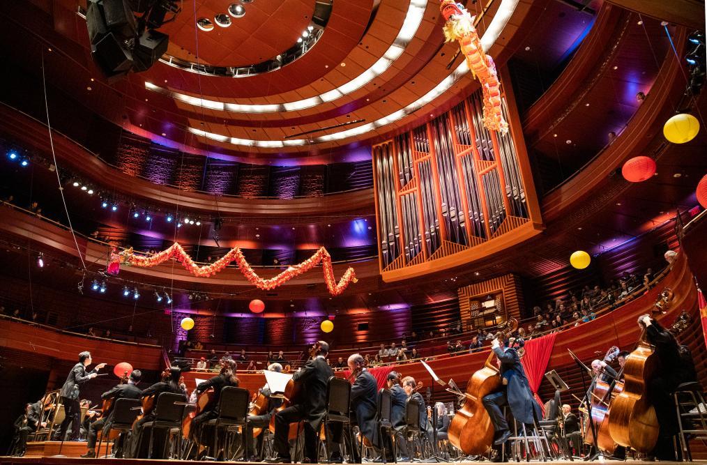 2019年1月29日,上海爱乐乐团与费城交响乐团的演奏家们在美国费城举行的首届中国新年音乐会上携手演出。新华社记者 王迎 摄