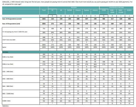 一些人受到财务困境的冲击,与此同时,食品成本飙升,这导致许多加拿大人不得不多掏钱包来支付日常必需品。Bazian说,加拿大人正在变得实际和聪明。他们只在必需品上花钱——包括房子和食物,但他们现在不愿意在家外花钱,比如看电影、参加音乐会,也许是旅行。Ipsos民调发现,34%的加拿大人报告说他们与一年前相比,每月的债务支付增加了。几乎一半(45%)的人表示他们认为在未来一年内,如果不增加债务,他们将无法支付生活开销。