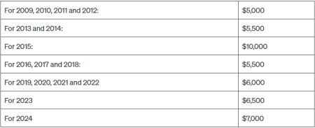 自TFSA推出以来,从未供款且符合资格的人,到2024年可获得的总供款额度为95,000元。任何年满18岁的人都有资格开设TFSA,供款额度从他们年满18岁的那一年开始累积。以下是TFSA历年来的供款额度: