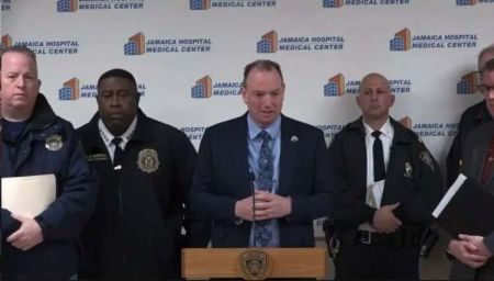 纽约市警察局总警司Jeffrey Maddrey在牙买加医院举行的媒体发布会上宣布了这一消息。他表示,当地时间凌晨5:10左右,一名“年轻女性”拨打了911,告诉调度员她的堂兄正在皇后区的一处住宅内杀害家人。