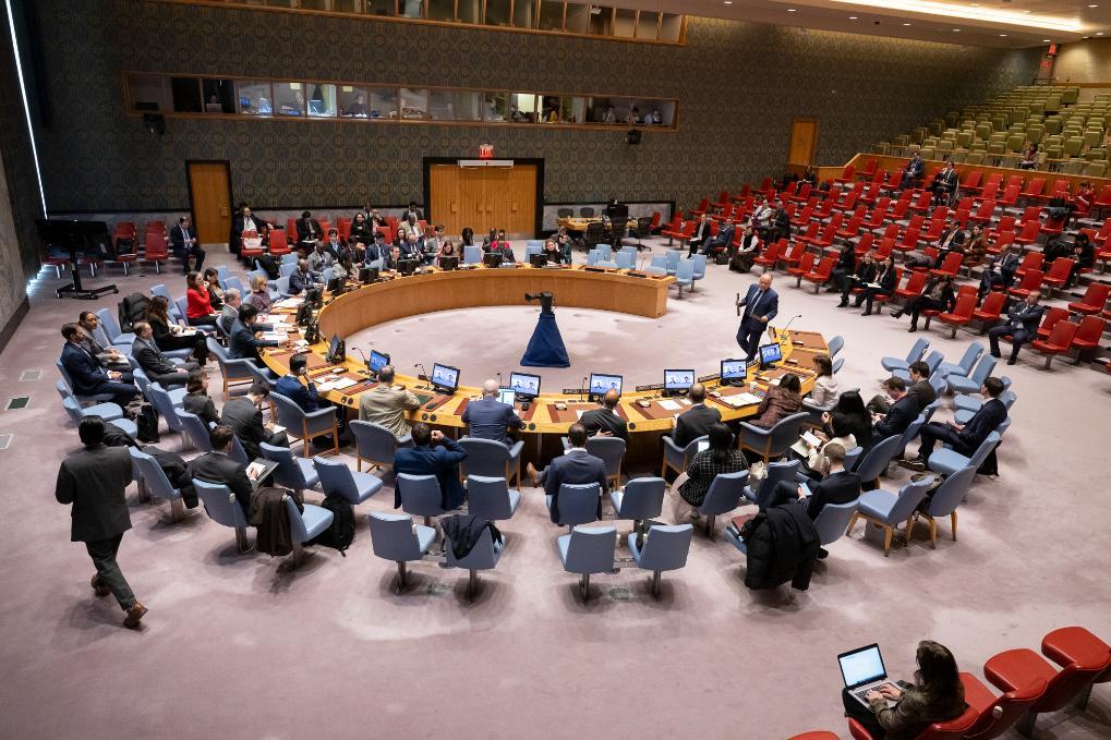 这是12月20日在位于纽约的联合国总部拍摄的联合国安理会会议现场。新华社发(联合国供图/曼努埃尔·埃利亚斯摄)