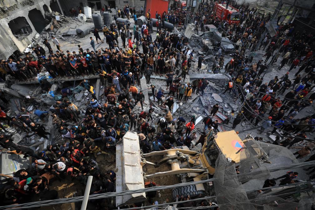 2023年12月20日,在加沙地带南部城市拉法,人们在以军空袭后开展救援。新华社发(亚西尔·库迪摄)