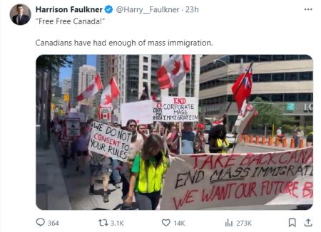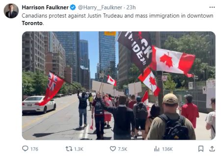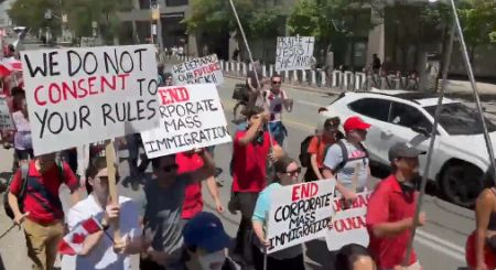 这一切使得越来越多祖祖辈辈生活在加拿大的人们感到沮丧,他们住不起房子,甚至连养家糊口都困难,在这个国家挣扎着生存。因此,大批人走上街头,抗议自由党政府的移民政策,他们希望能够重回之前那个充满公平和光明的加拿大。抗议者们高举标语:“Take Back Canada!End Mass Immigration(夺回加拿大!终结大规模移民政策)”