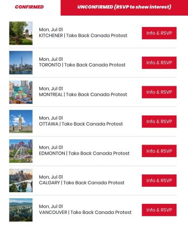 除此之外,根据之前的活动计划,加拿大共有7个城市相应号召,举行“夺回加拿大”抗议活动。除了多伦多和渥太华外,还有安省Kitchener、蒙特利尔、埃德蒙顿、卡尔加里和温哥华。