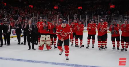 卡尔加里的球迷则聚集在 Last Best Brewing & Distilling,为加拿大队高唱最后一遍《O Canada》。Ryan Badr 身穿加拿大冰球球衣,肩披国旗,他表示对加拿大队的胜利感到兴奋。Badr 说道,“你拥有世界上最好的球员——作为卡尔加里人,我们平时讨厌在比赛中对阵他……但 McDavid 只要获得射门机会就足够了,他指的是埃德蒙顿油人队队长。这让我想起 15 年前的 Sidney Crosby。”