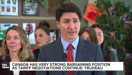周三,特鲁多与特朗普通话。特鲁多形容通话“内容丰富”,而《华尔街日报》则称其“激烈争论”且“夹杂脏话”。特鲁多周四警告称,加拿大“将在可预见的未来继续面对美国发起的贸易战。”渥太华当天宣布对300亿元的美国商品征收报复性关税,并计划在21天后再加征1250亿元的额外关税。特鲁多表示,只要“不合理的”关税仍然存在,加拿大就会坚持立场。