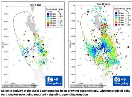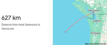 深海之下,一股狂暴的力量正在积蓄。距离温哥华仅600多公里的太平洋深处,一座沉睡的巨兽——阿克西尔海山(Axial Seamount)正发出令人不安的低吼。这座宽达1.6公里的海底火山,藏身于4900英尺的黑暗深渊,如今已膨胀至临界点,岩浆在海底之下疯狂涌动,地震频次疯狂攀升。科学家紧急拉响警报:它可能明天就喷发!