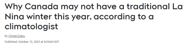 不过,菲利普斯指出,在过去十年中,即使出现拉尼娜,加拿大的冬天整体仍比往年温和。