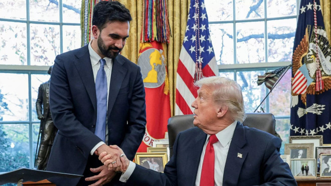 当天,特朗普在白宫椭圆形办公室接见曼达尼,在场记者见证了此次会面。据美国《纽约时报》形容,两人笑容满面,现场笑声不断,赞美之词不绝于耳,气氛“充满温情”。