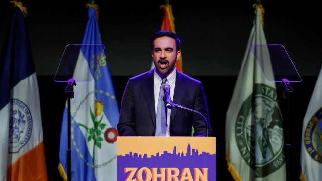 曼达尼11月4日胜出纽约市长选举,发表胜选演说(Reuters)