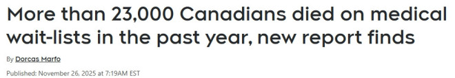 一份最新报告对加拿大日益严峻的候诊死亡问题发出强烈警示。公共政策智库SecondStreet.org发布的报告显示:2024年4月至2025年3月间,全加至少有23,746名患者在等待手术或诊断检查期间不幸离世。这一数字较上一年度上升3%;自2018年有系统统计以来,累计候诊死亡人数已突破10万。