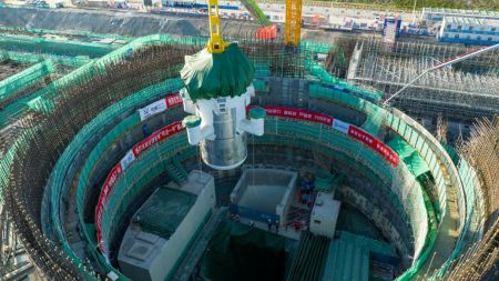 8月10日清晨5时许的海南昌江,随着现场一声令下,中核集团旗下中国核电(601985.SH)投资控股的中核海南多用途模块式小型堆科技示范工程玲龙一号反应堆核心模块被高高吊起,向核岛方向移动。几小时后,吊装成功。压力容器、蒸发器等关键设备一步到位,玲龙一号全球首堆的安装工作步入高峰期。