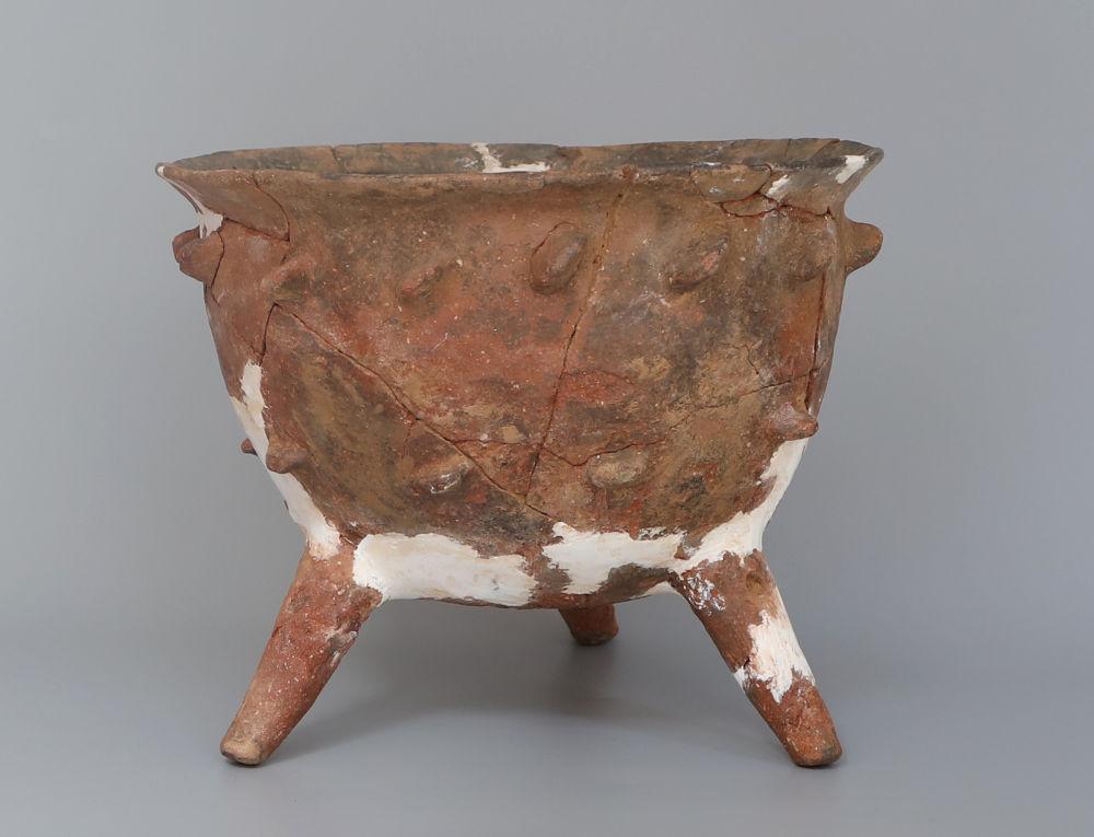 这是在位于河南省新郑市的裴李岗遗址出土的炊具鼎(资料照片)。新华社发(中国社会科学院考古研究所供图)