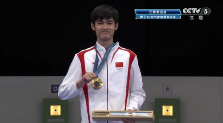 7月27日,获得2024年巴黎奥运会射击混合团体10米气步枪冠军,也是巴黎奥运会以及中国代表团的首金 ;7月29日,在巴黎奥运会射击男子10米气步枪决赛中,以252.2的成绩夺得金牌并打破奥运会纪录。(据都市网、图电视截图)