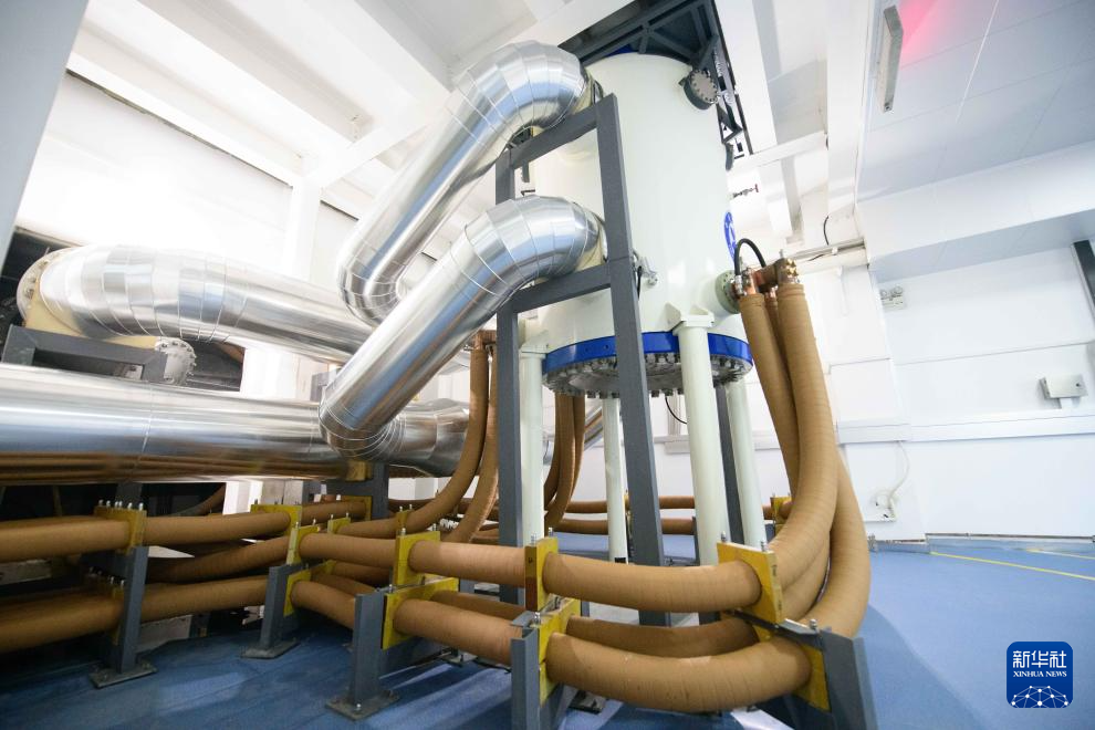 新华社合肥9月22日电,9月22日是周日,安徽合肥西郊科学岛上的一个实验室内却十分热闹,轰鸣声从一个巨大的白色罐体传来,身着白大褂的科研人员紧盯着罐体上方的小屏幕。